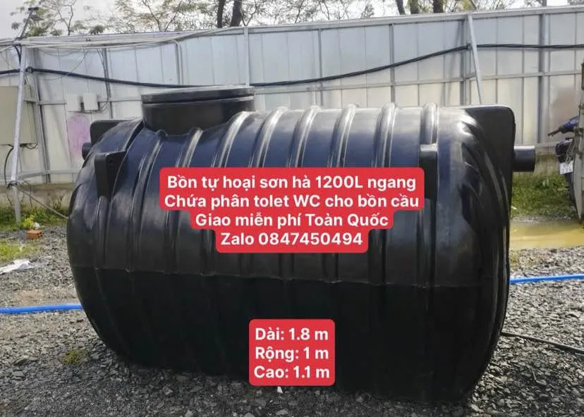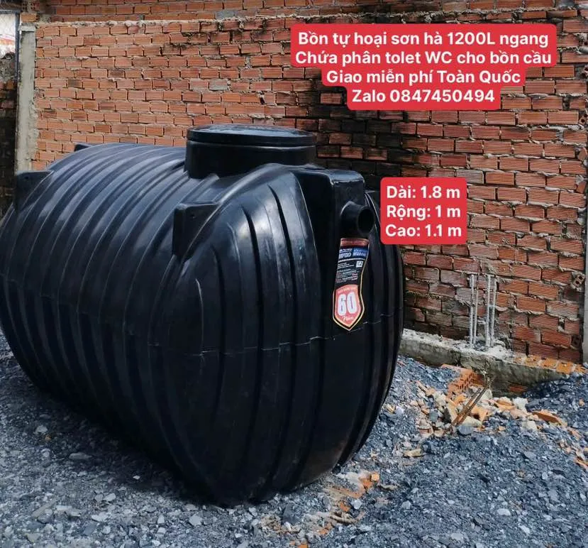 👉 Bồn tự hoại Sơn Hà 1200L ngang (bể phốt 1200 lít, tự hoại 1.2 khối nằm, 1,2m³ nằm Sơn Hà 3 ngăn) là giải pháp chứa phân toilet WC an toàn, thay thế hầm chứa bê tông truyền thống, thi công nhanh – sạch – bền lâu.