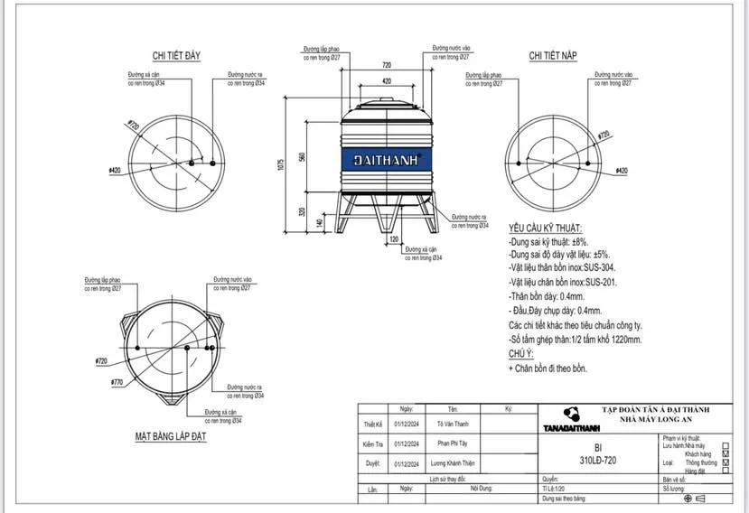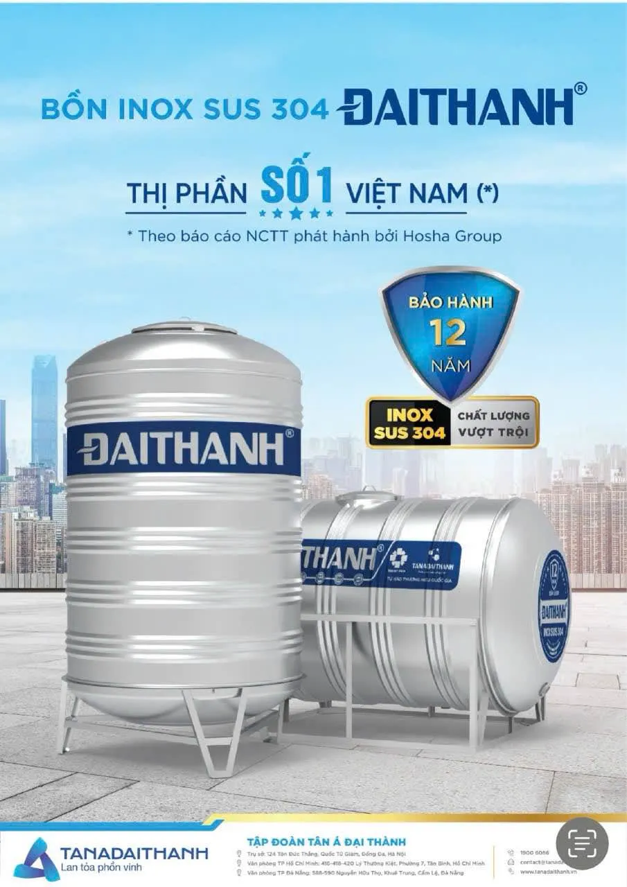 👉 Đây chính là giải pháp: Bồn inox 304 Đại Thành 310L