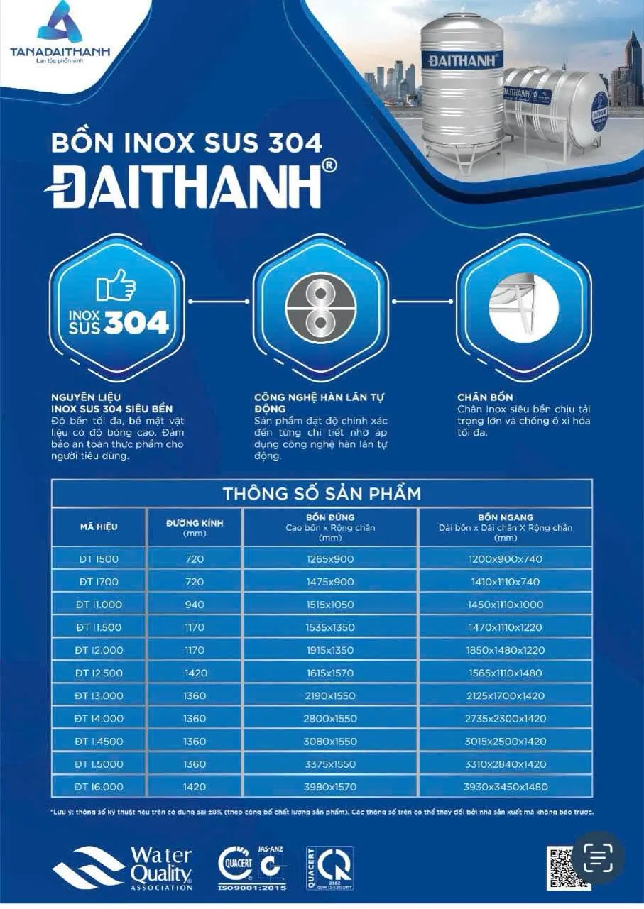 👉 Bồn Inox 304 Đại Thành 4000L chính là lựa chọn tối ưu