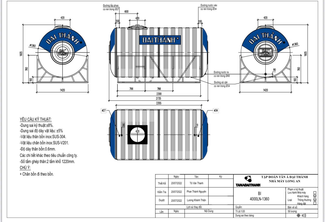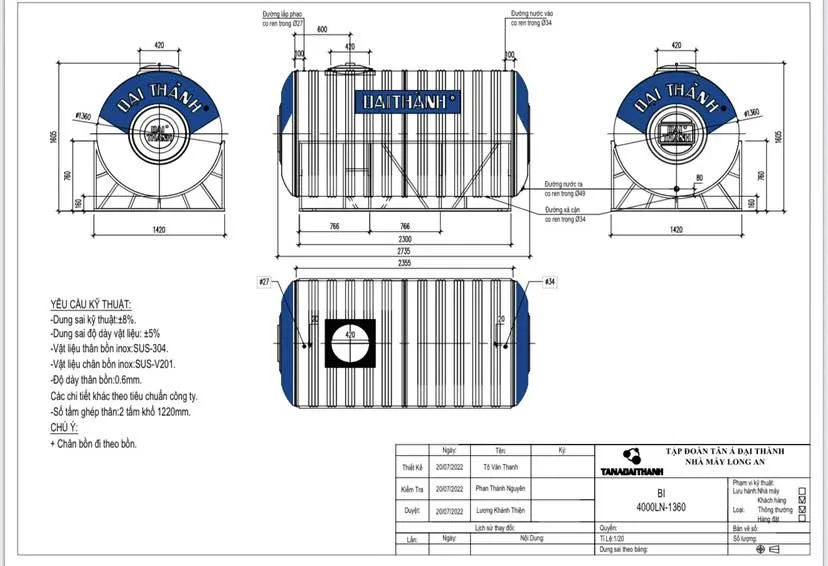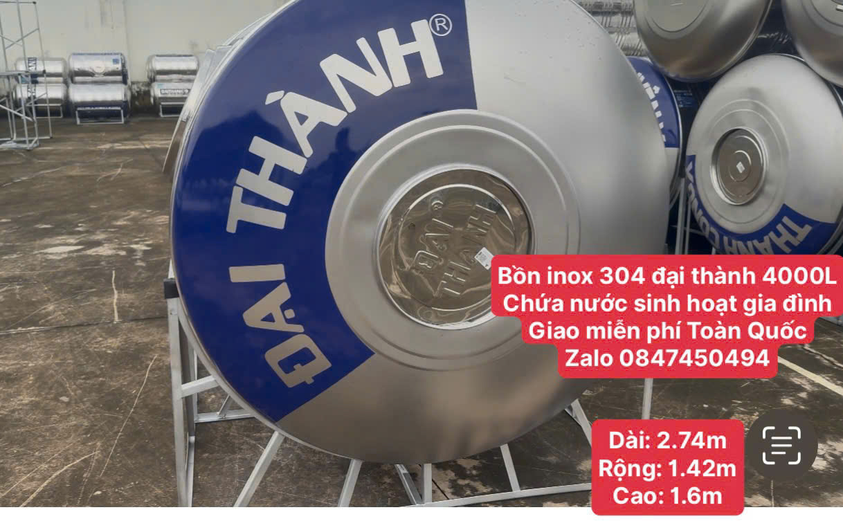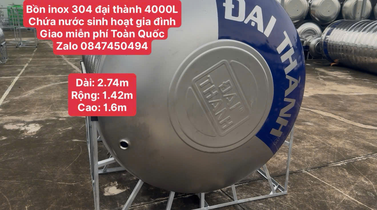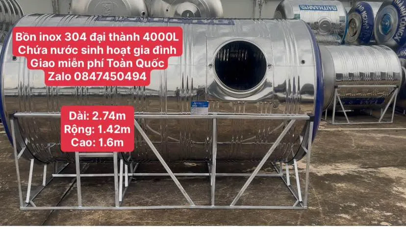 🌟 BỒN INOX 304 ĐẠI THÀNH 4000L – AN TOÀN, BỀN ĐẸP, TIẾT KIỆM 🌟